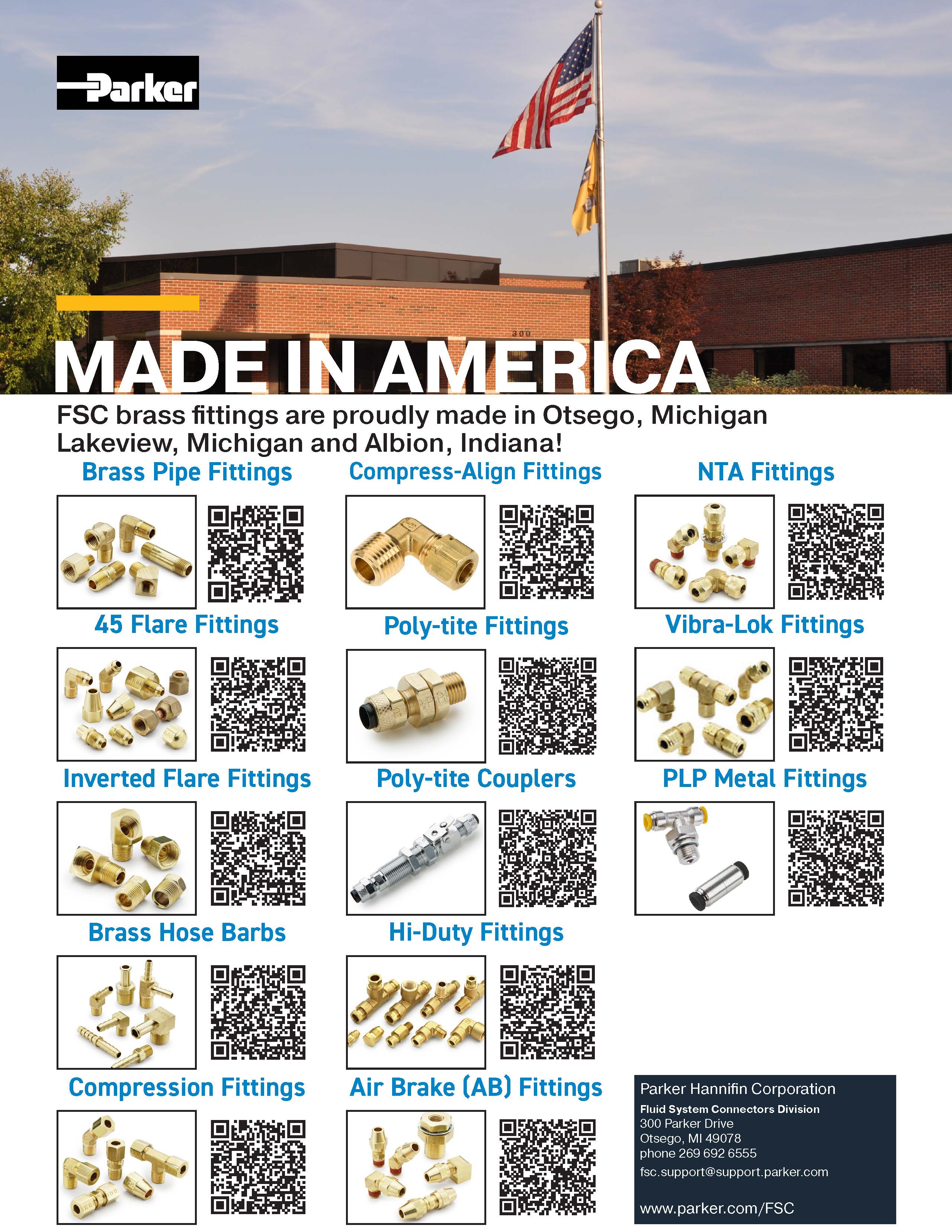 From Otsego and Lakeview, Michigan to Albion, Indiana, Parker FSC brass fittings are 100% American-made, which means: